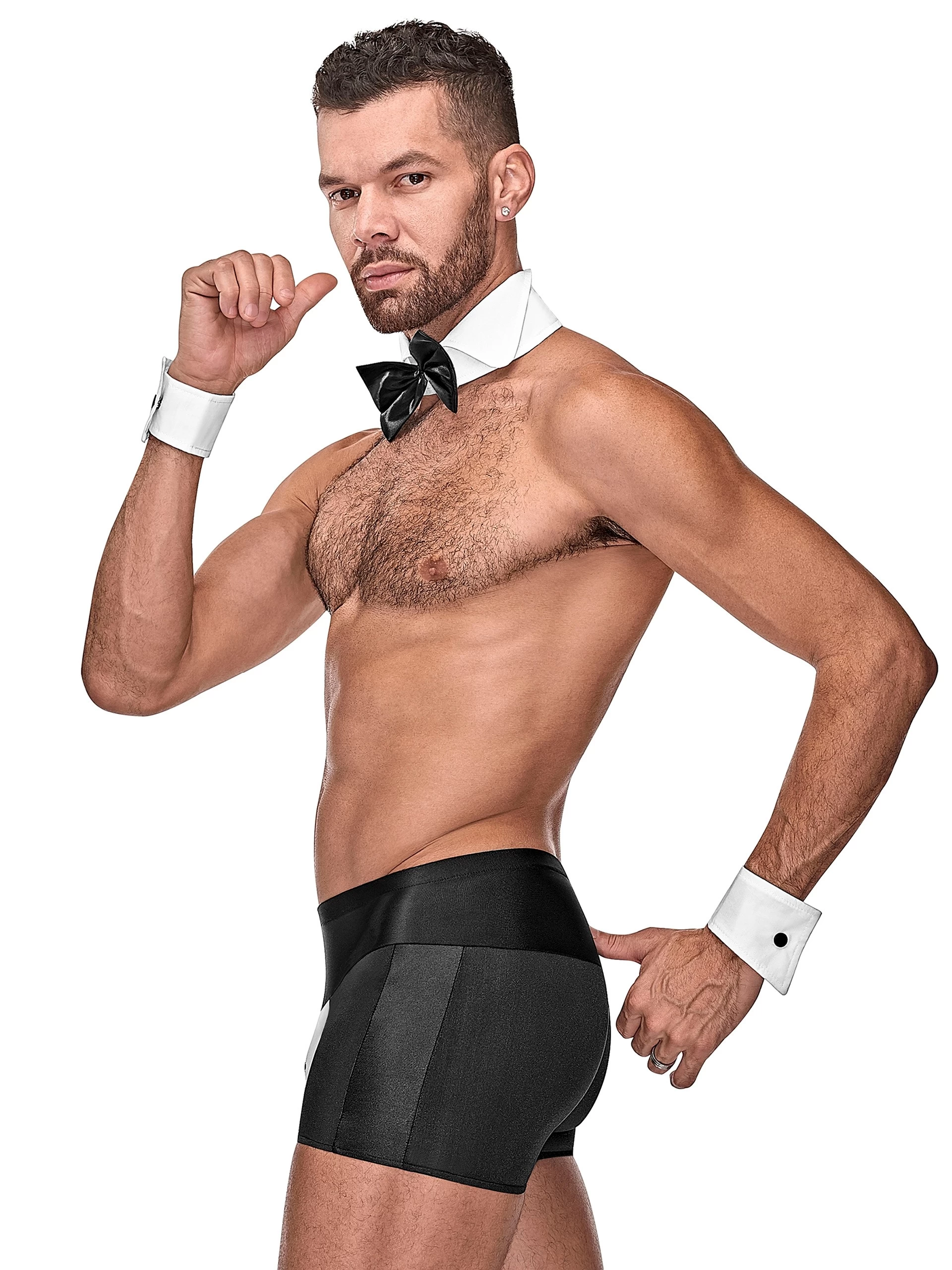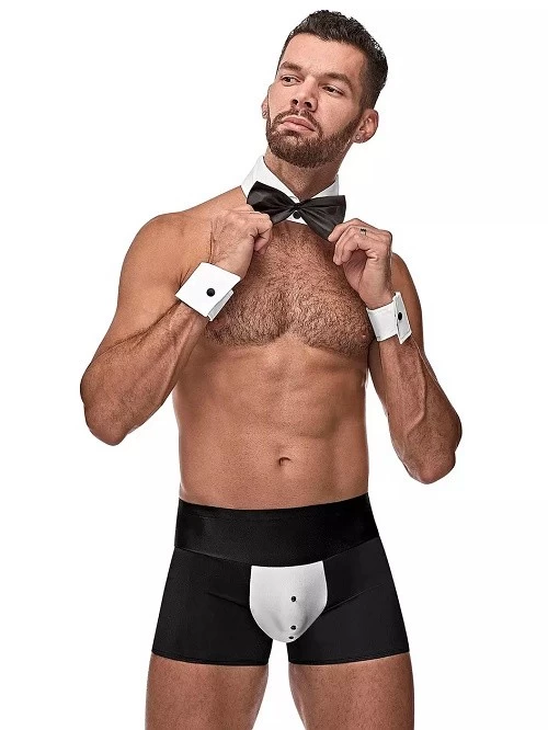 Give service with more than just a smile in this incredibly sexy tuxedo-style butler costume from Male Power. Irresistibly tight shorts, wrist cuffs and a bow tie collar ensure your guest’s eyes are on you – the buffest of all butlers.