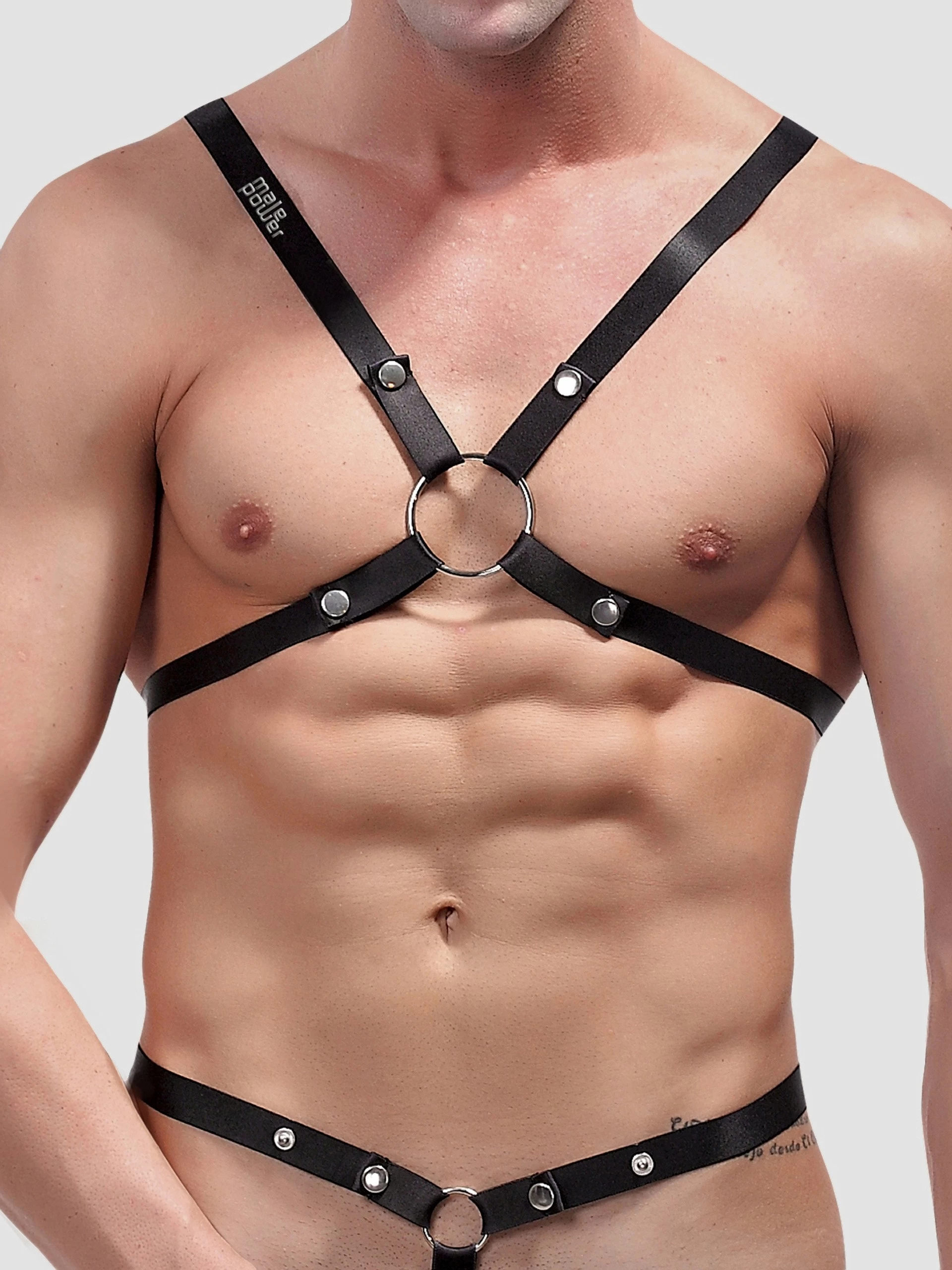 - Chest harness features 2 metal O-rings to attach to bondage accessories