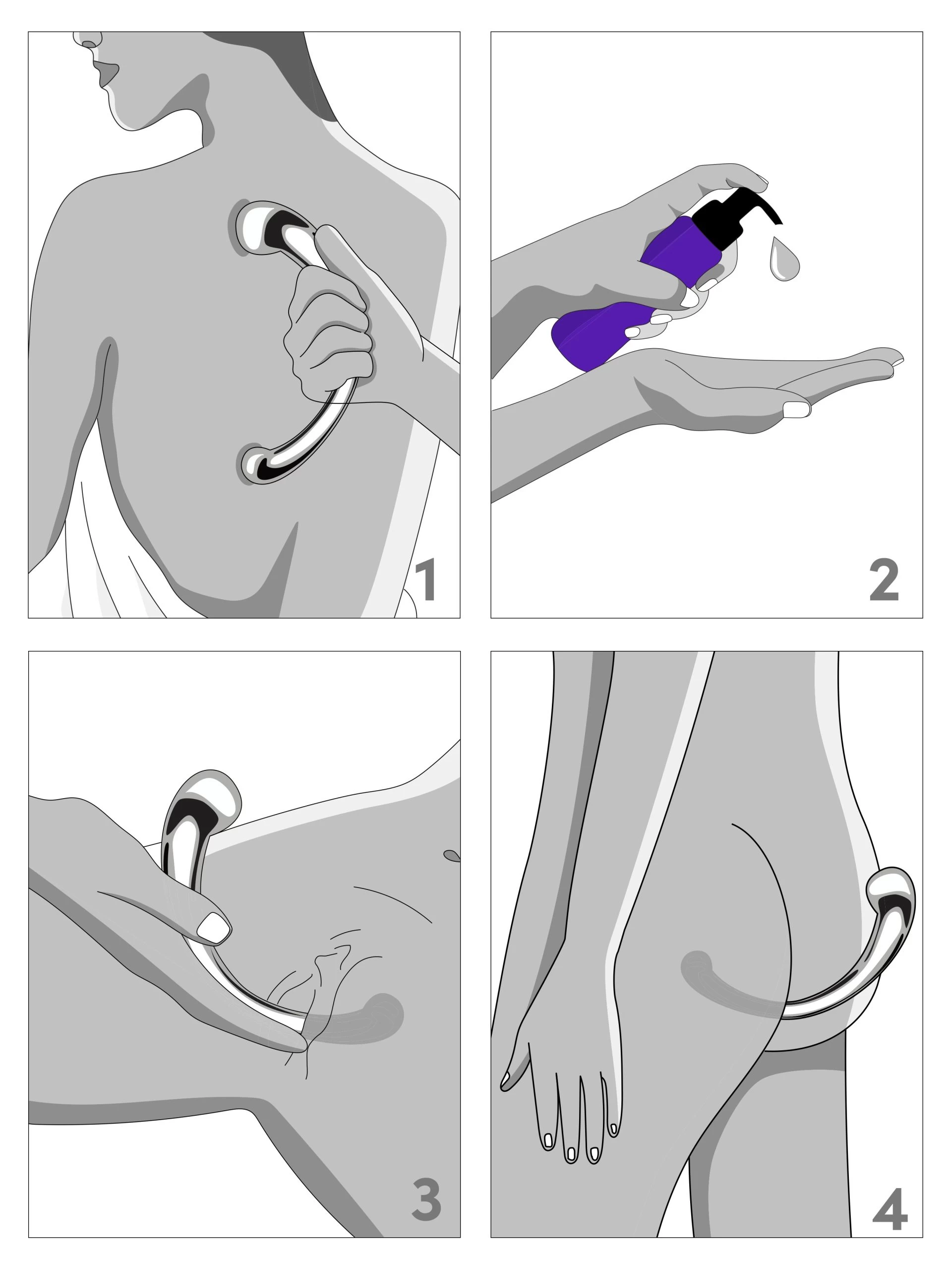 - Double-ended for variation of sensation, and curved for precise stimulation