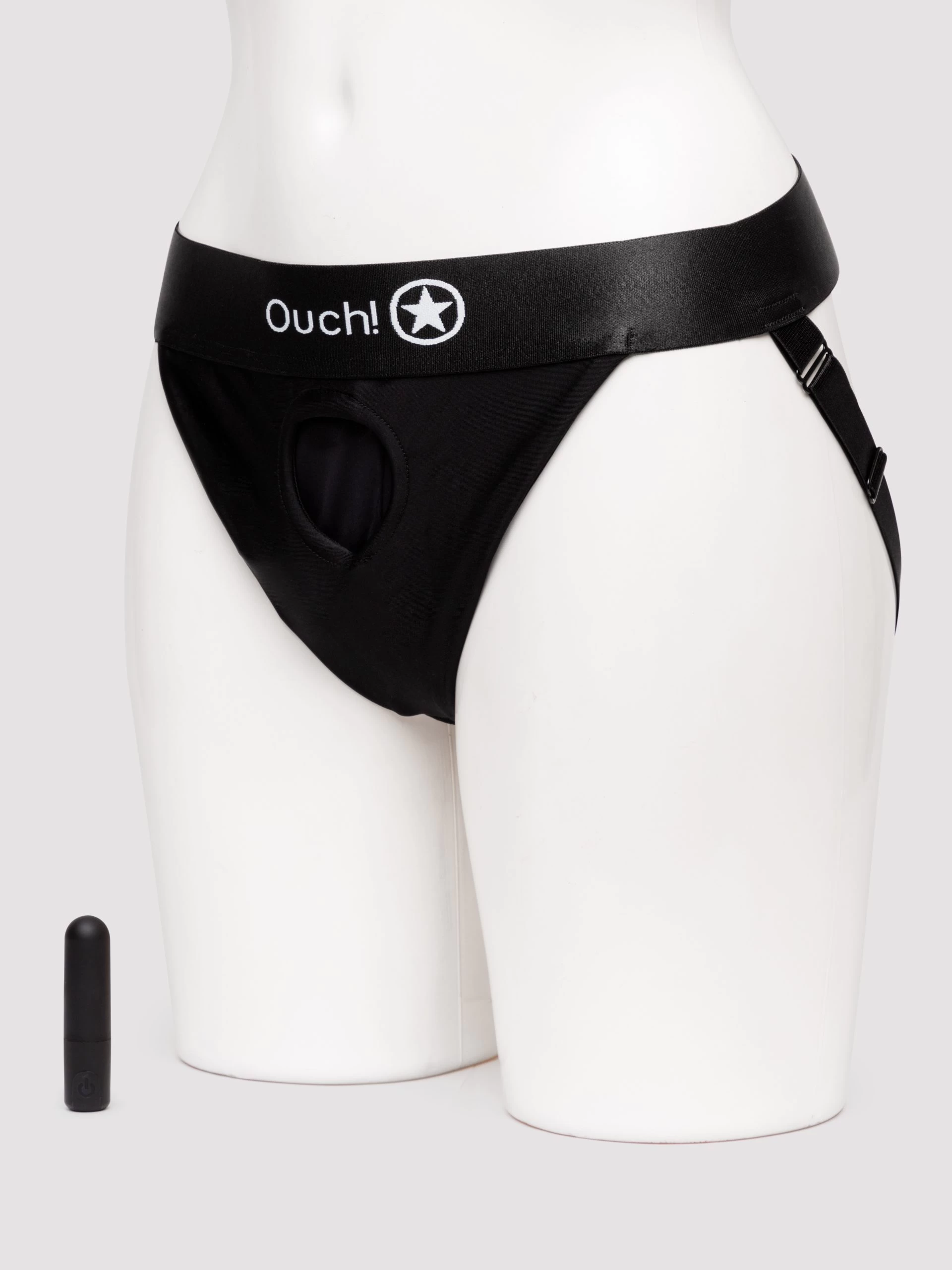 Get your buzz on and indulge in all your packing, pegging and penetration fantasies with these easy-to-wear vibrating strap-on panties from Ouch! Offering an open-back design for a saucy added treat, these briefs are all about comfort and ease of use.