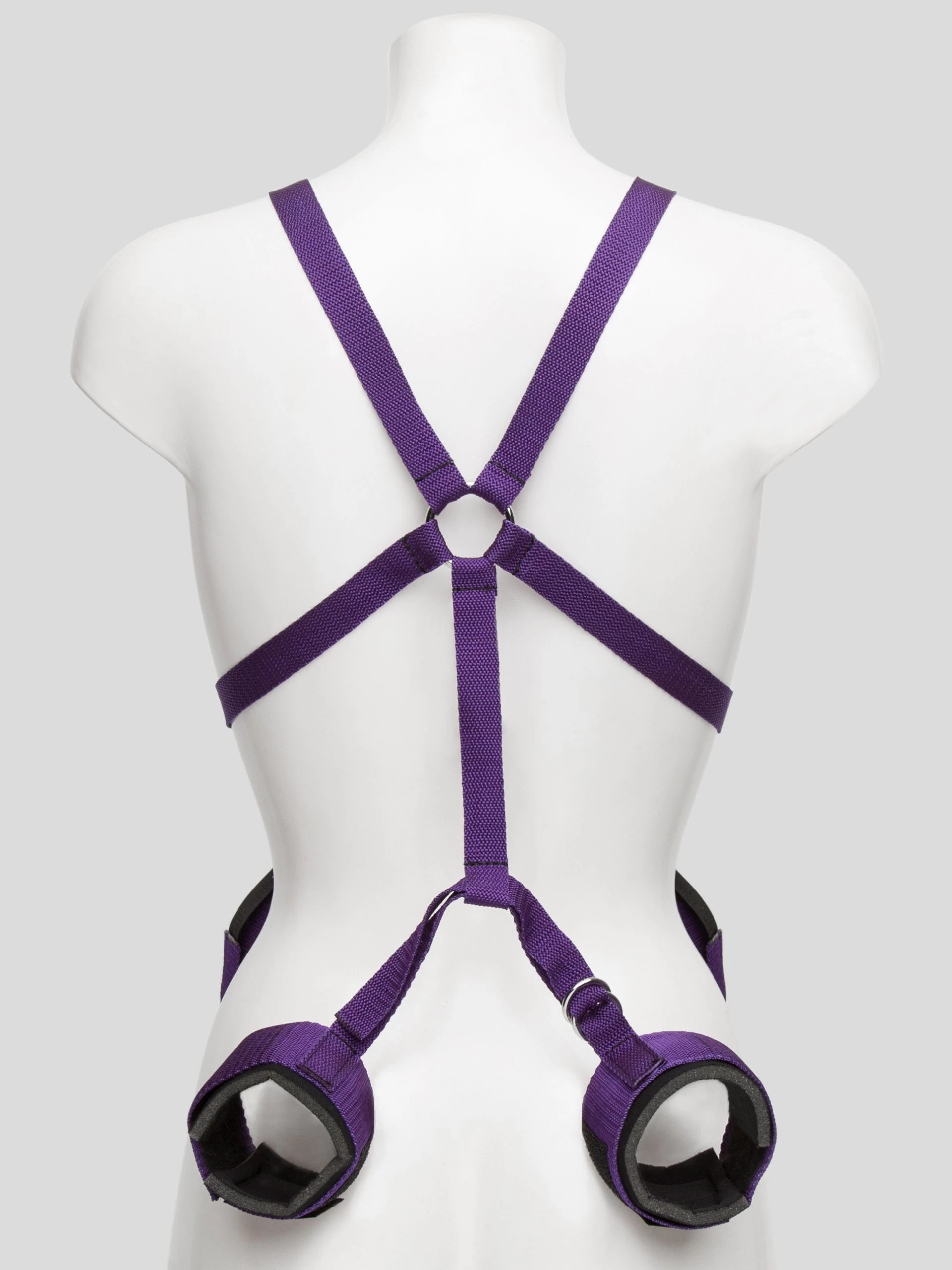 ‘Bum up, face down’ is probably the best way to describe this restraint set. Best enjoyed in an all fours position, it puts the wearer’s arms behind their back, and their knees up by their chest. Easily adjustable for a custom fit and padded for comfort.