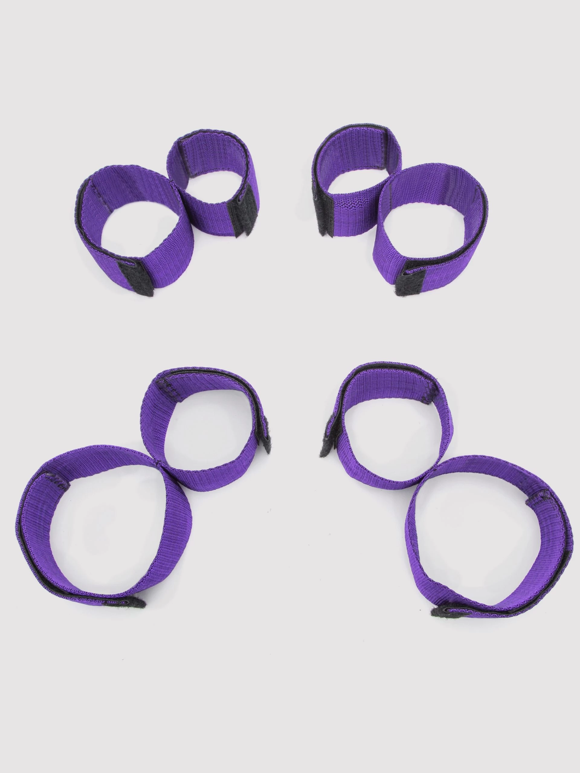 All 4 of the Velcro-fastened straps on this set adjust for the perfect fit at the wrists, ankles, arms and thighs.