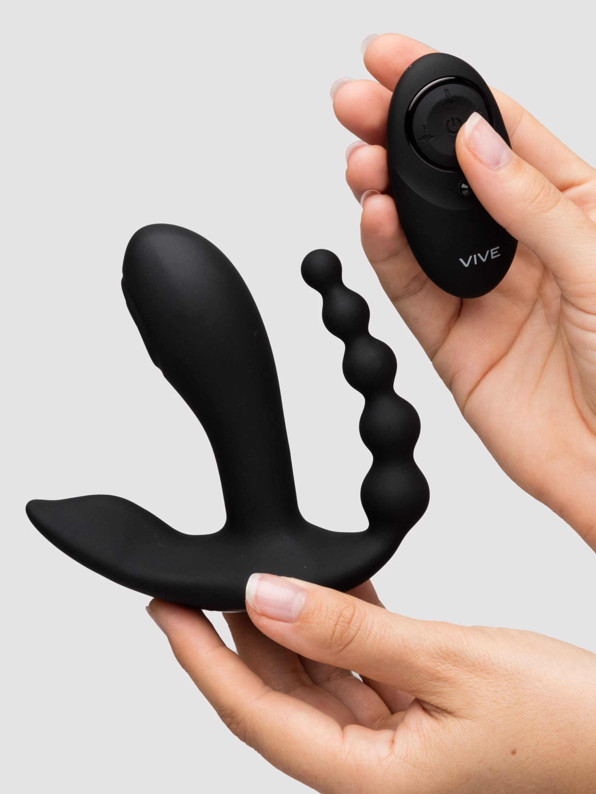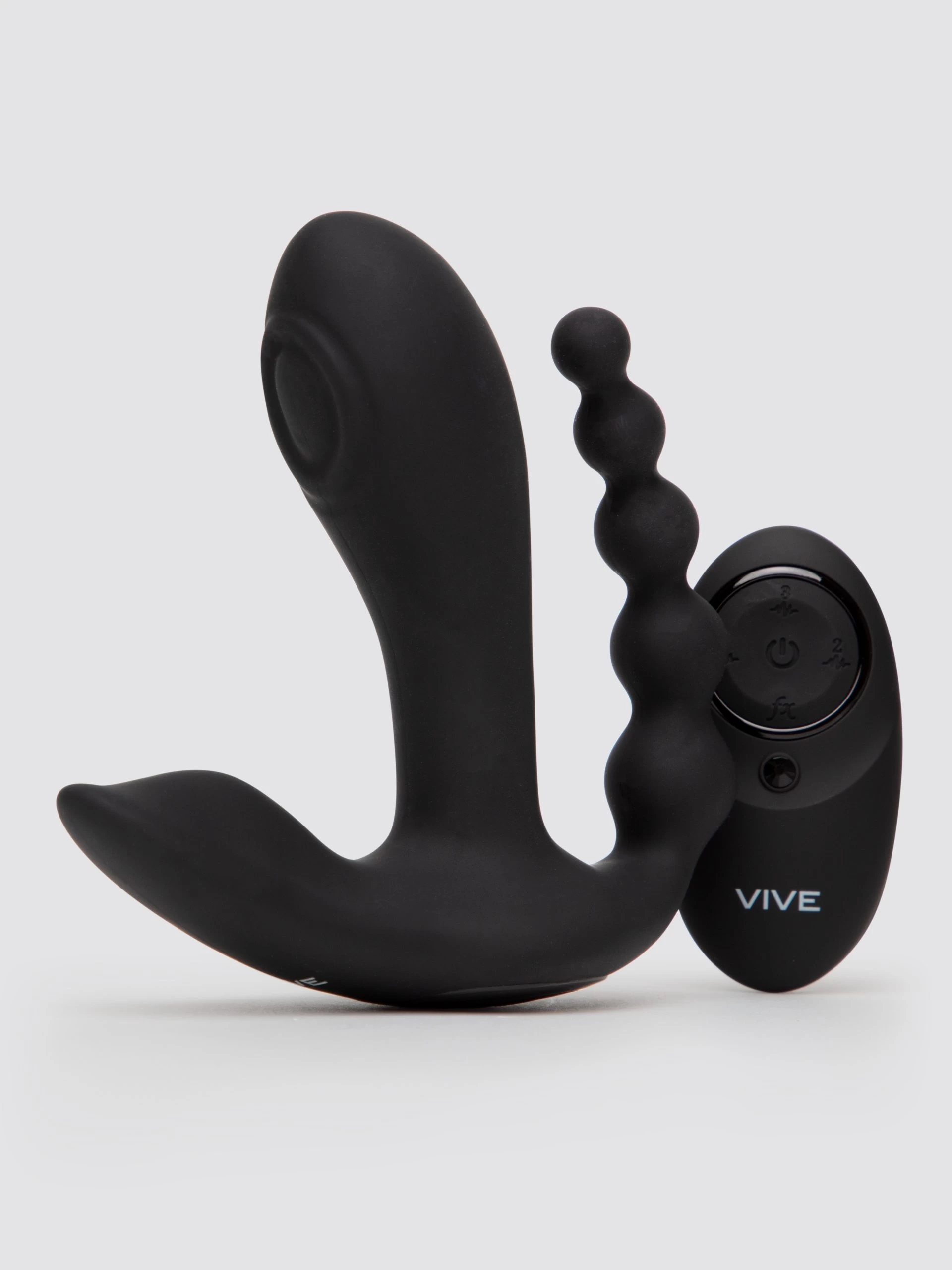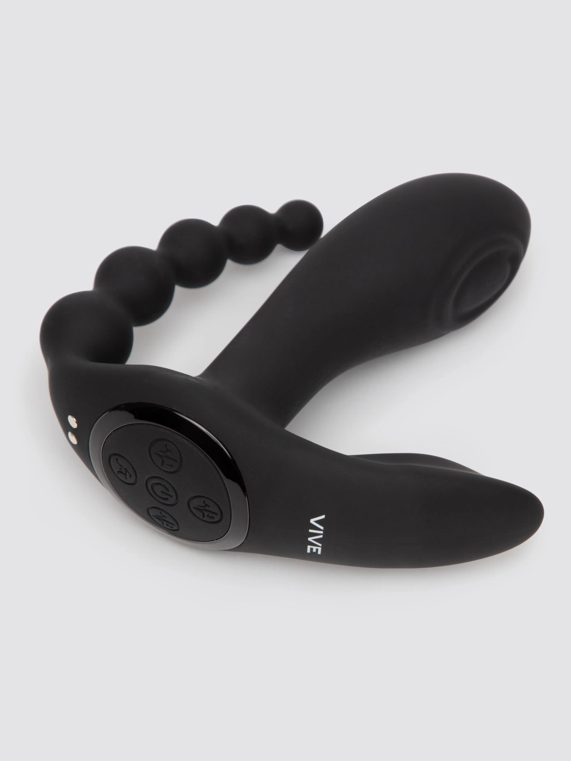 - Thrilling vibrator targets 3 hotspots at once: clitoris, G-spot and ass
