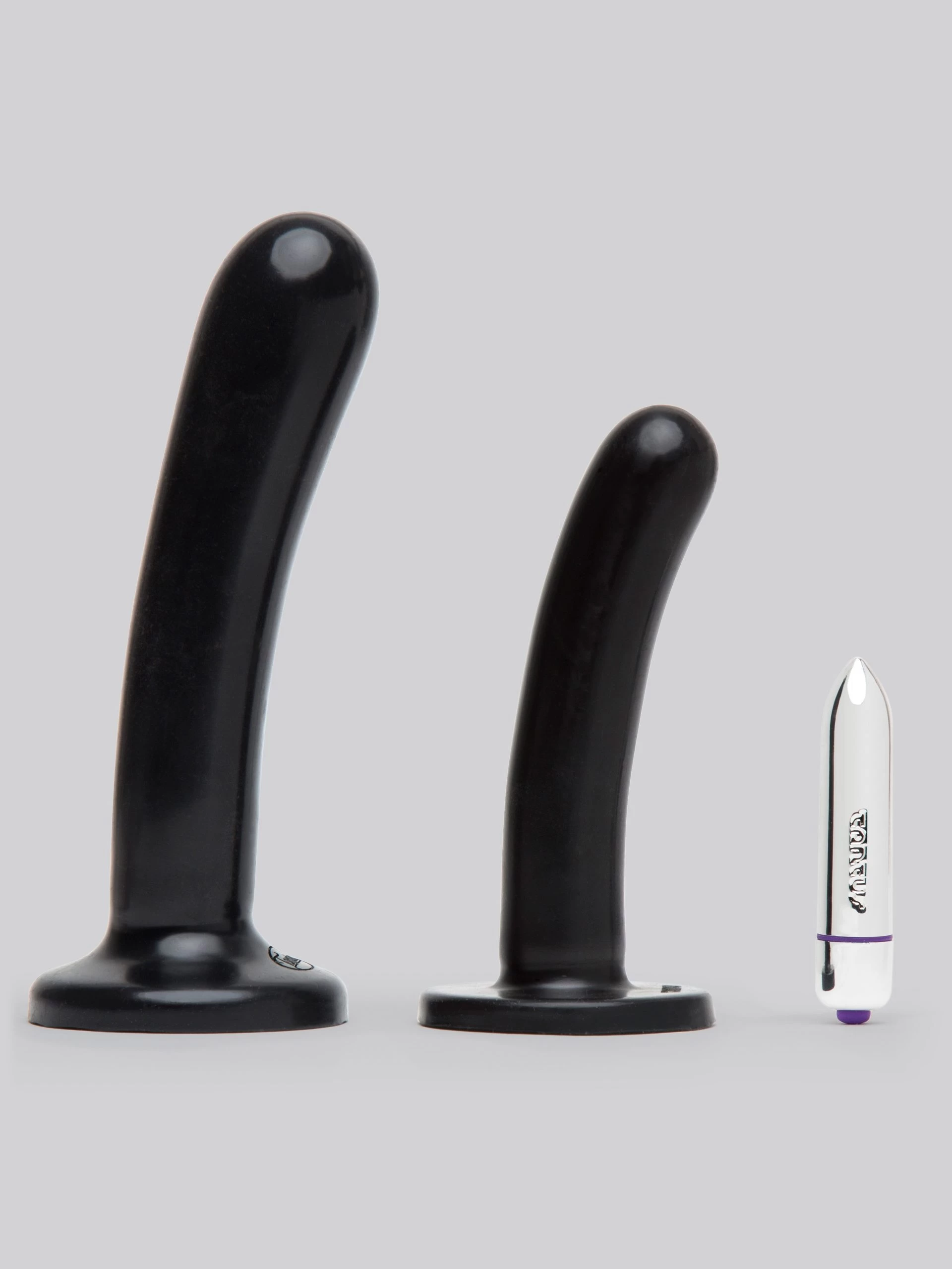 Girthy for filling pleasure and curved to hit your G and P-spot, the dildos supplied in this set are made from ultra-premium platinum silicone for a totally hypoallergenic and phthalate-free finish. Also included is a powerful bullet vibrator, which slips into a specially designed pocket in the harness to add an exciting tingle to playtime.
