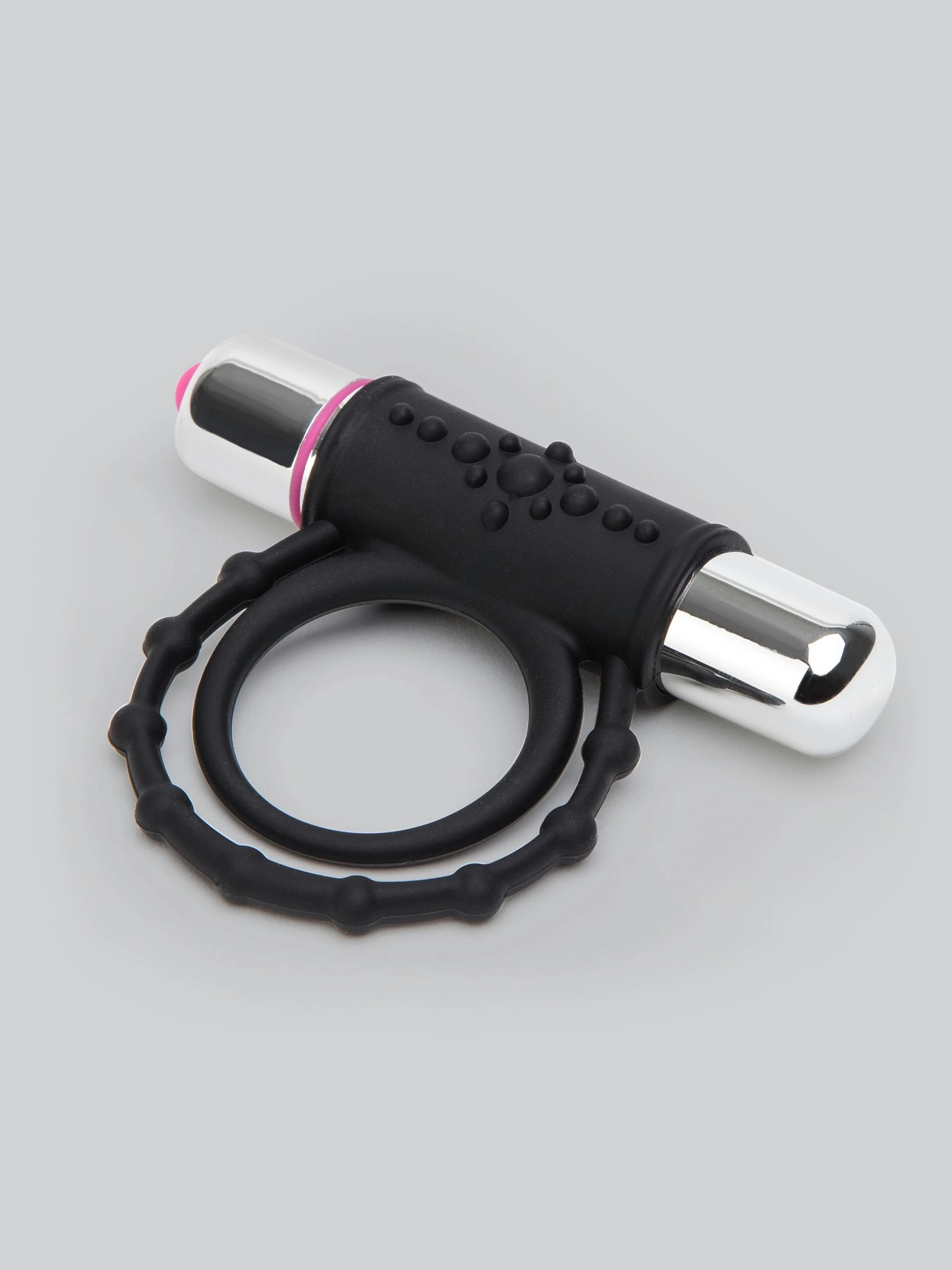 - Textured double cock ring with single-speed vibrations for mutual pleasure